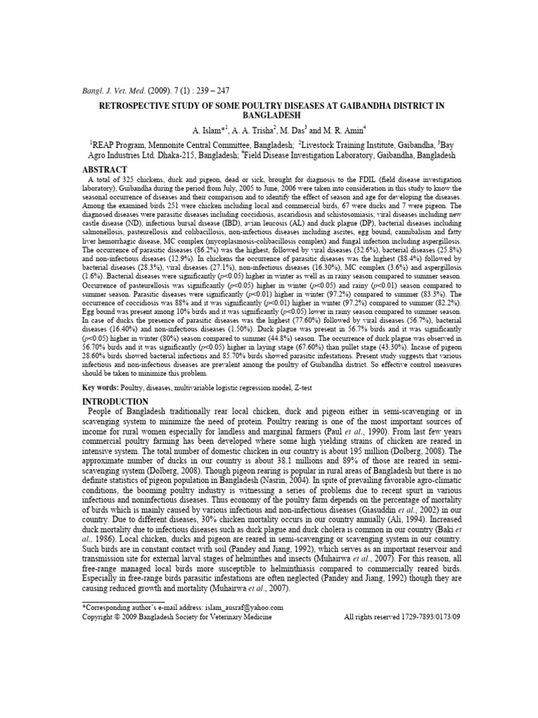 Retrospective Study of Some Poultry Dise | PDF | Chicken | Infection