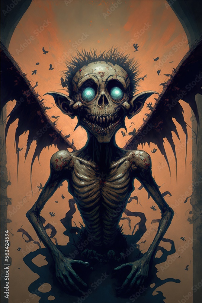 Diseased and plague ridden gargoyle with sharp teeth and devilish wings ...