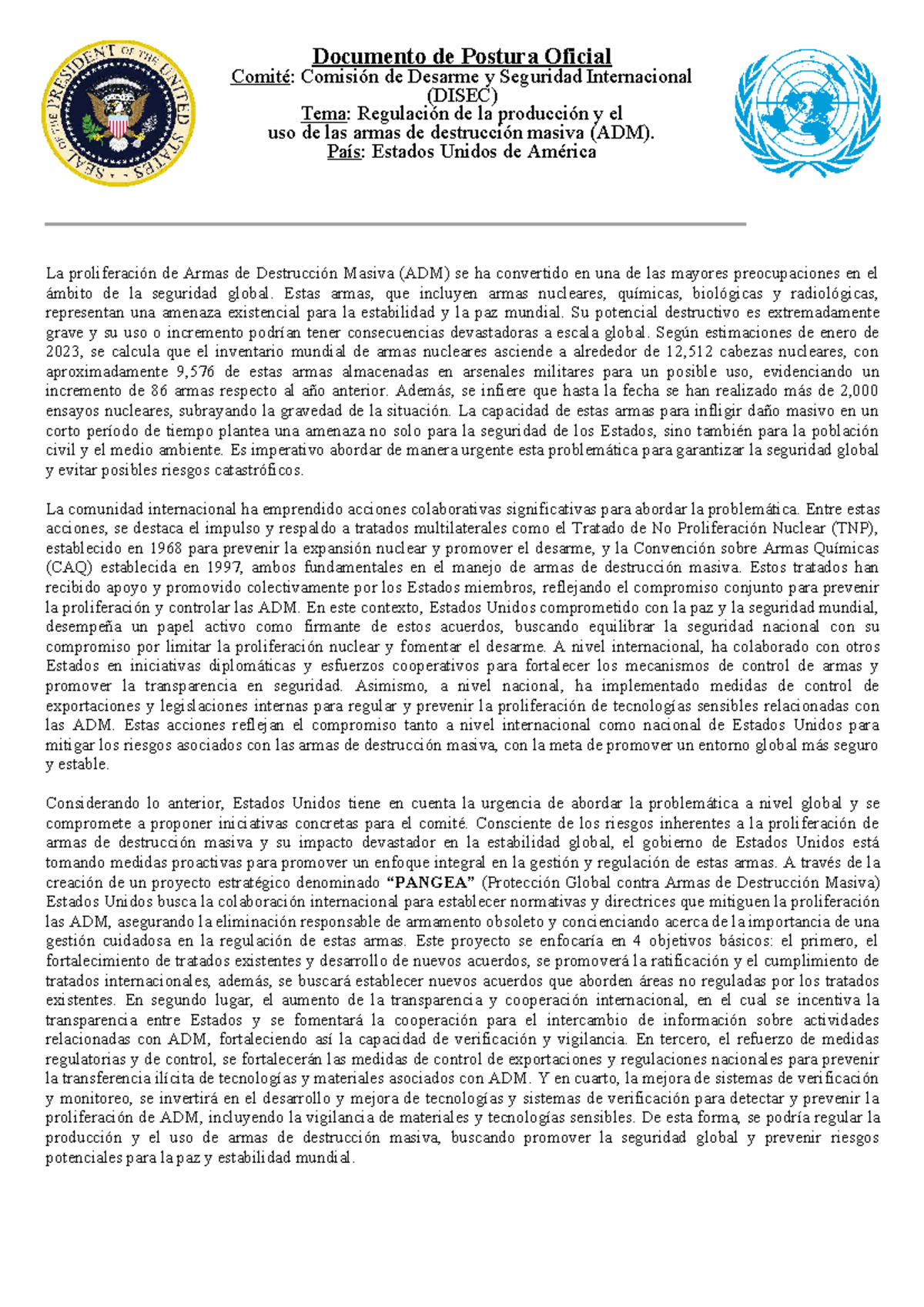 DISEC - Postura Oficial de EE.UU. sobre Armas de Destrucción Masiva ...