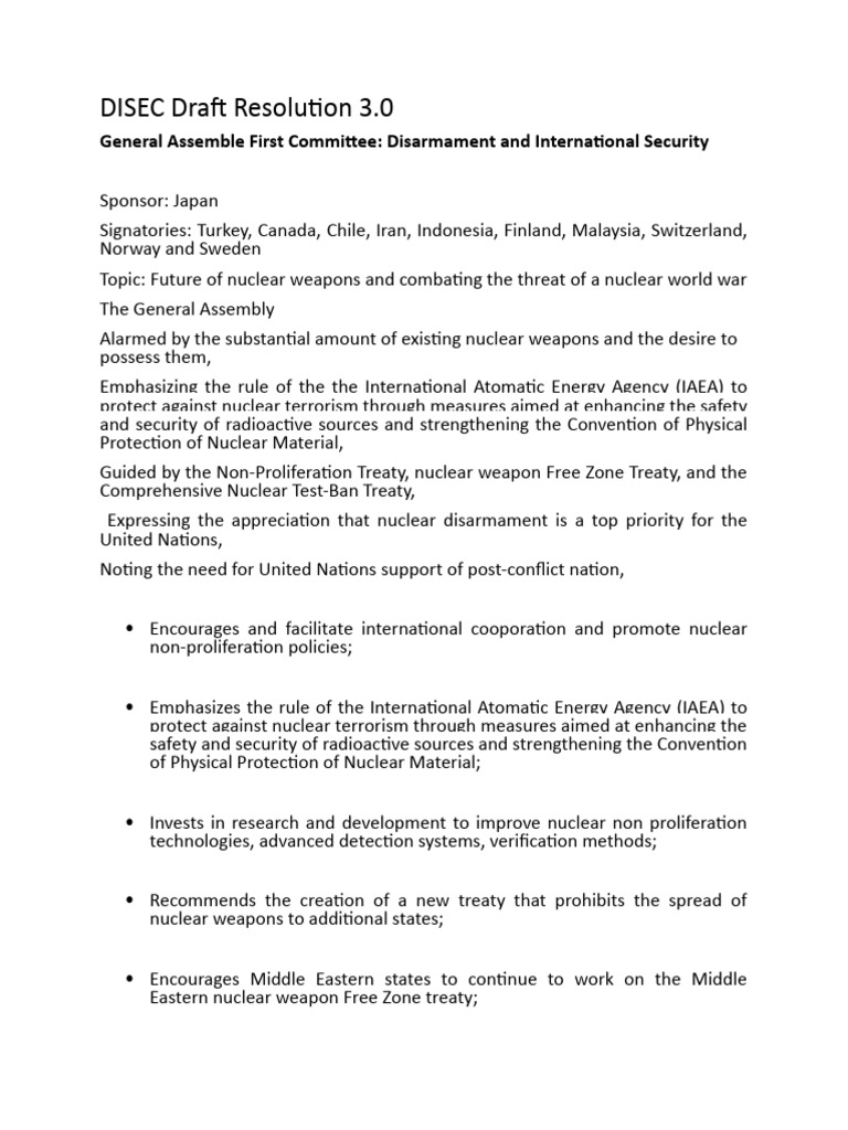 Disec Sample Resolution | PDF | Treaty | Nuclear Weapons