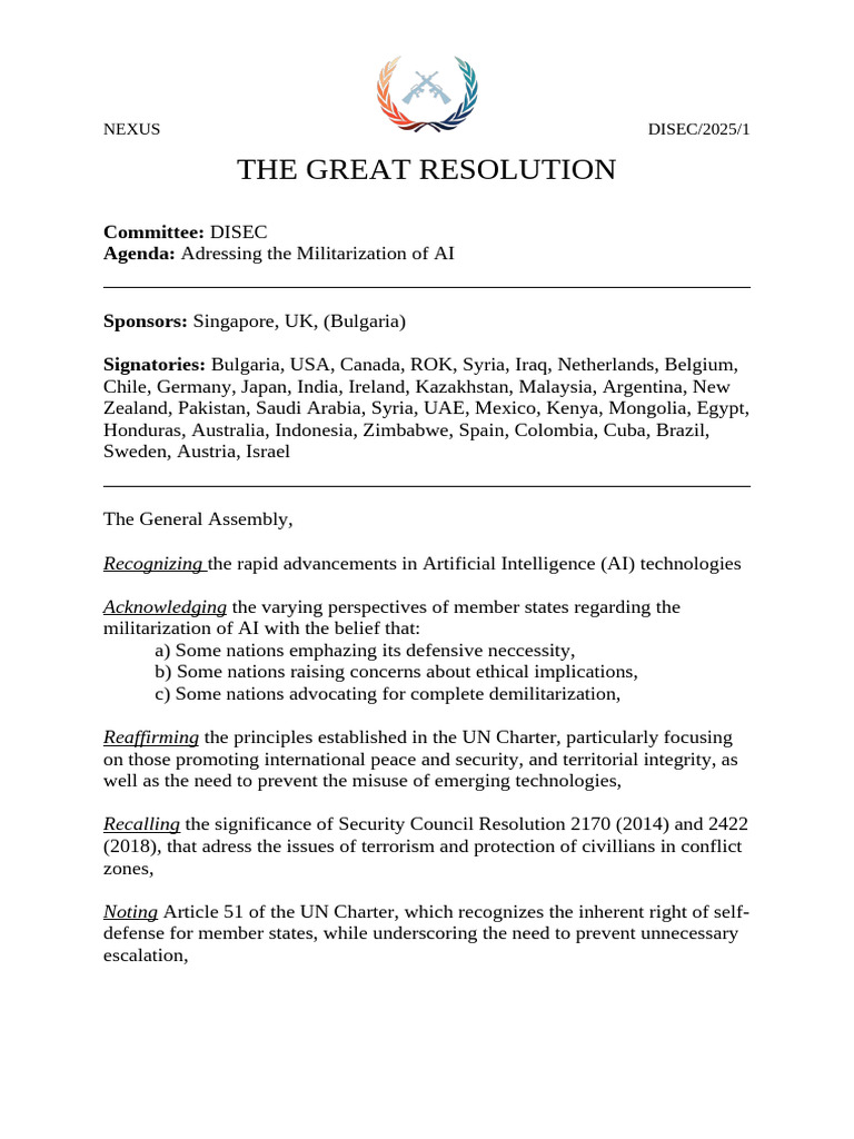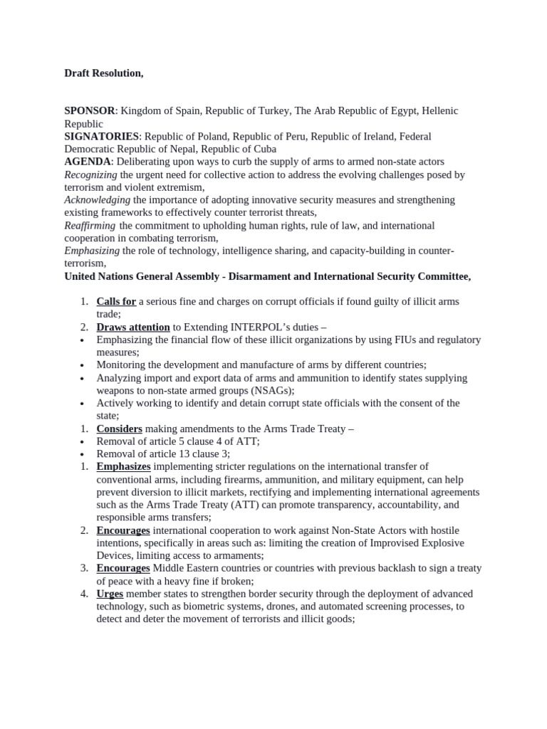 Resolution Merged DISEC HMUN - Signatories: Ireland, Uganda, Syria ...