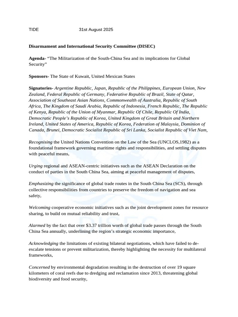 Iish Mun 2025 Disec t.i.d.e Draft Resolution Final | PDF | South China ...