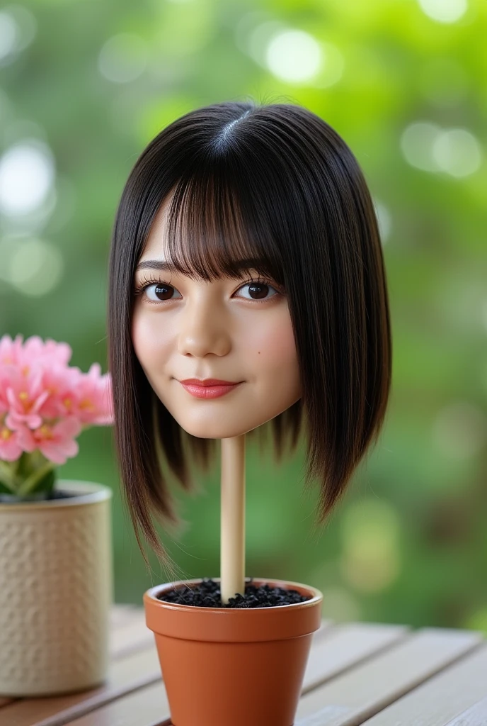 ((disembodied head statue on desk stand)), a beautiful natural ...