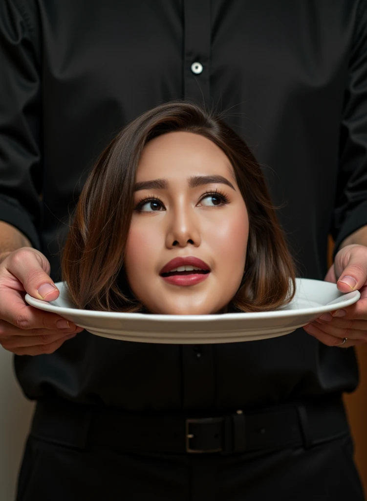 ((disembodied head)) A beautiful Indonesian woman stands expressionless ...