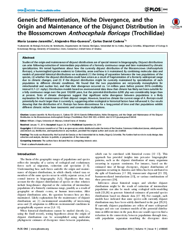 (PDF) Investigating the cause of the disjunct distribution of ...