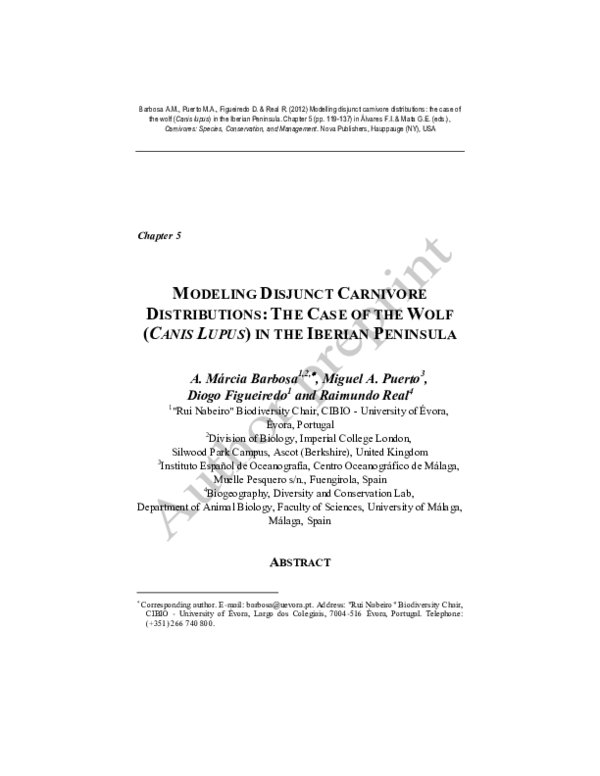 (PDF) Modelling disjunct carnivore distributions: the case of the wolf ...