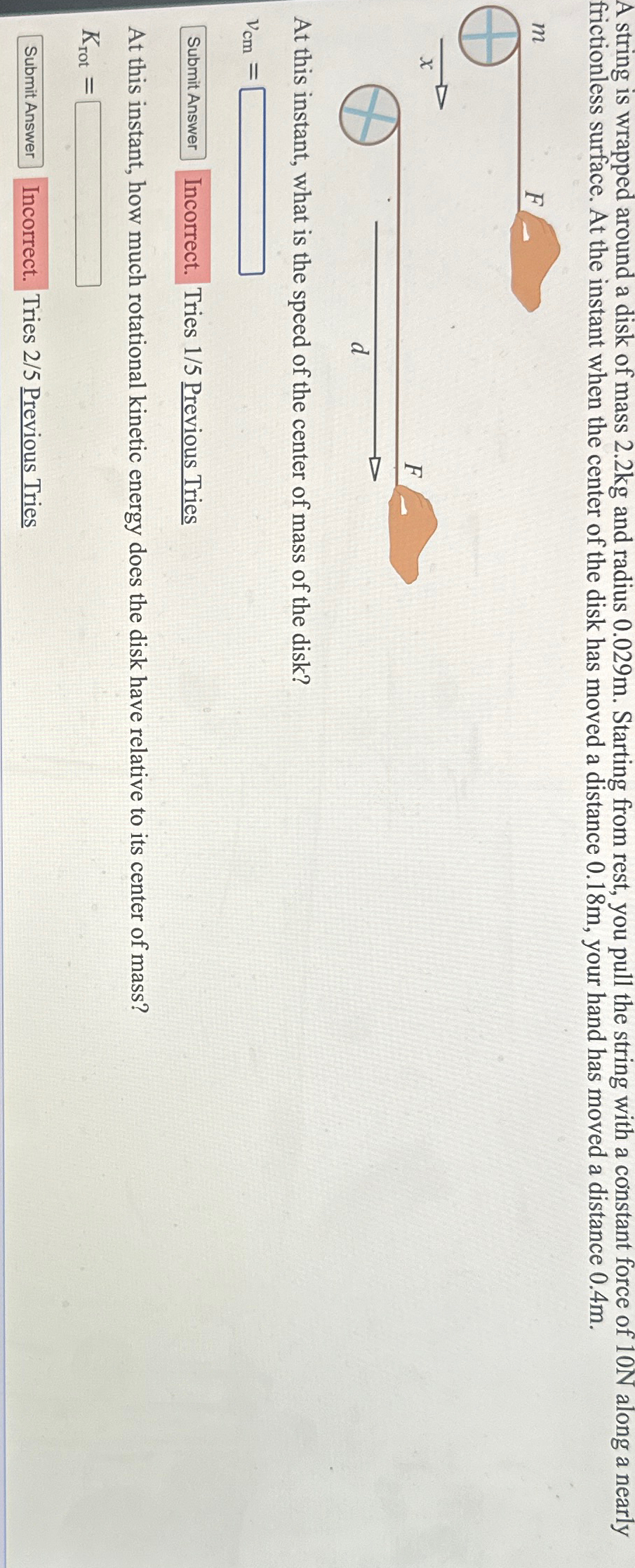 Solved A string is wrapped around a disk of mass 2.2kg and | Chegg.com
