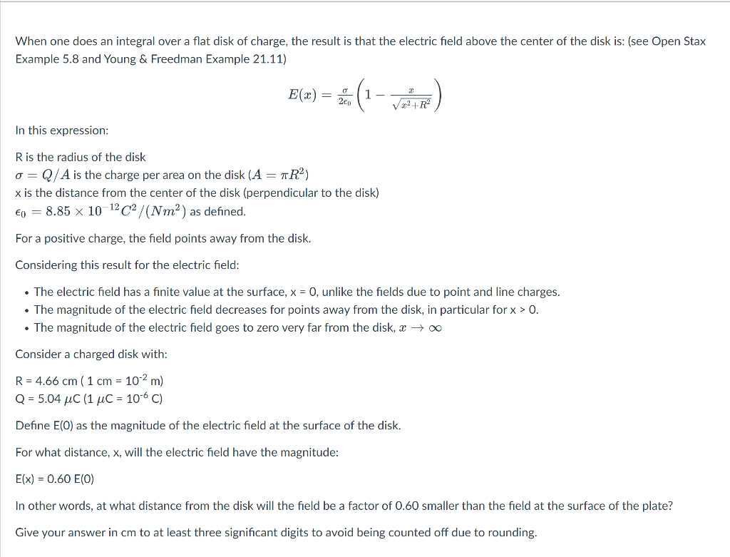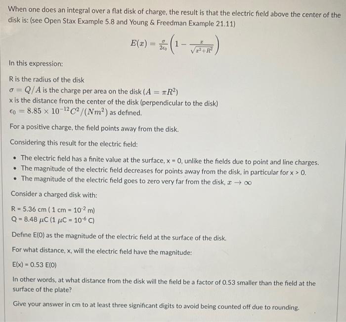 Solved When one does an integral over a flat disk of charge, | Chegg.com