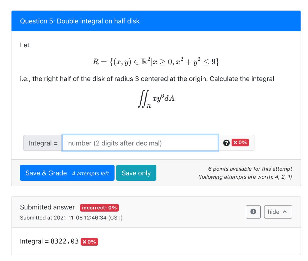 Solved Question 5: Double integral on half disk Let R= = | Chegg.com