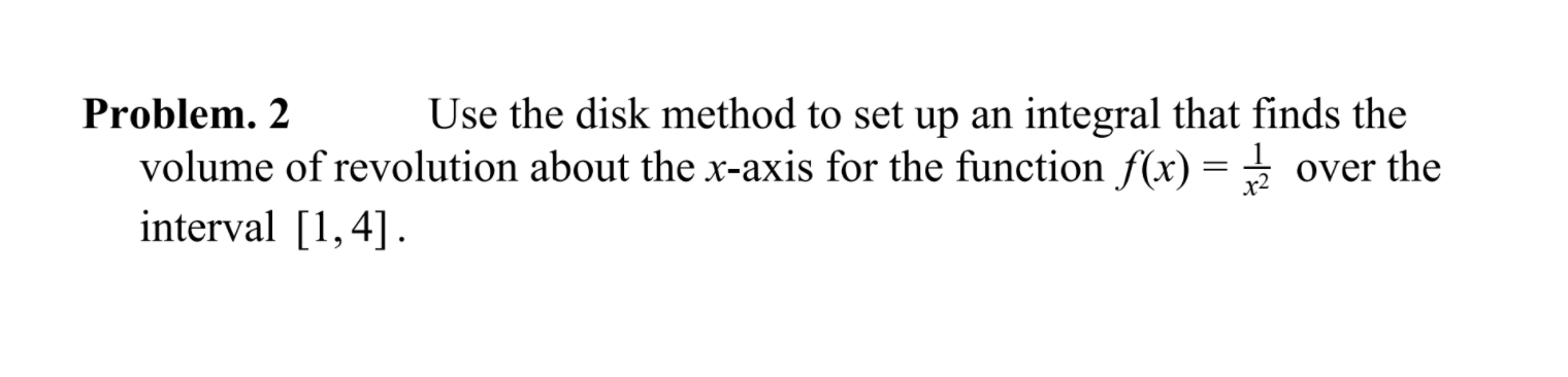 Solved Problem. 2 Use the disk method to set up an integral | Chegg.com