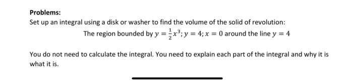 Solved Problems: Set up an integral using a disk or washer | Chegg.com
