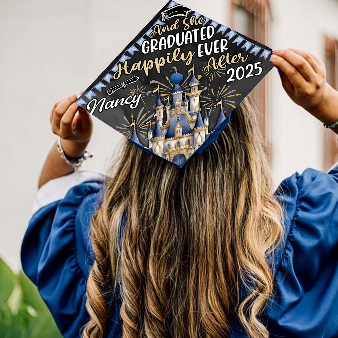 Custom Disney Inspired Graduation Cap Topper, and She Graduated Happily ...