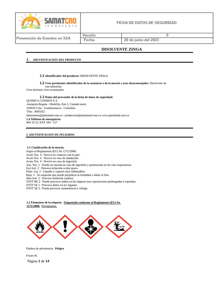 Ficha de Seguridad del Disolvente Zinga | PDF | Compuesto orgánico ...