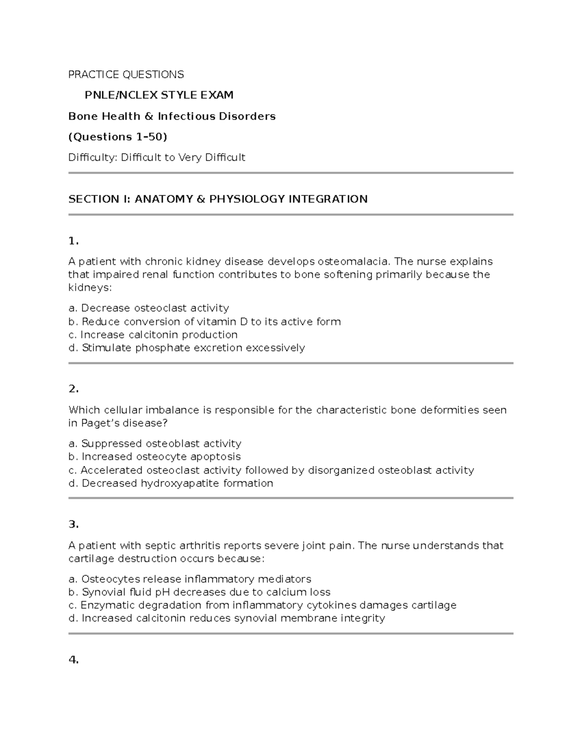 PRACTICE QUESTIONS: Bone Health & Infectious Disorders (Difficult ...