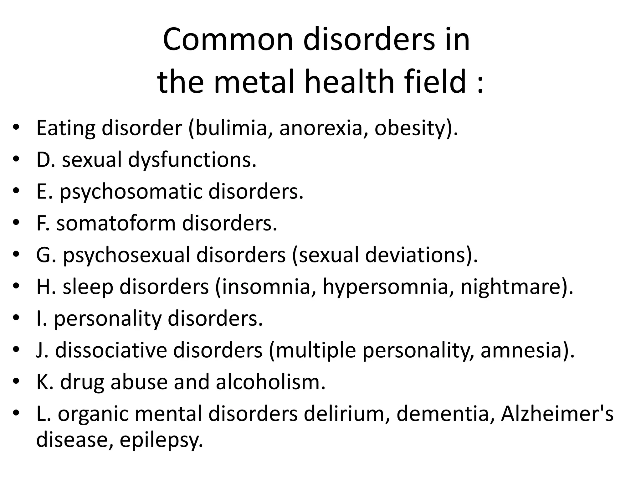 Mental Disorders Examples Mental Disorders And Oral Diseases: Future