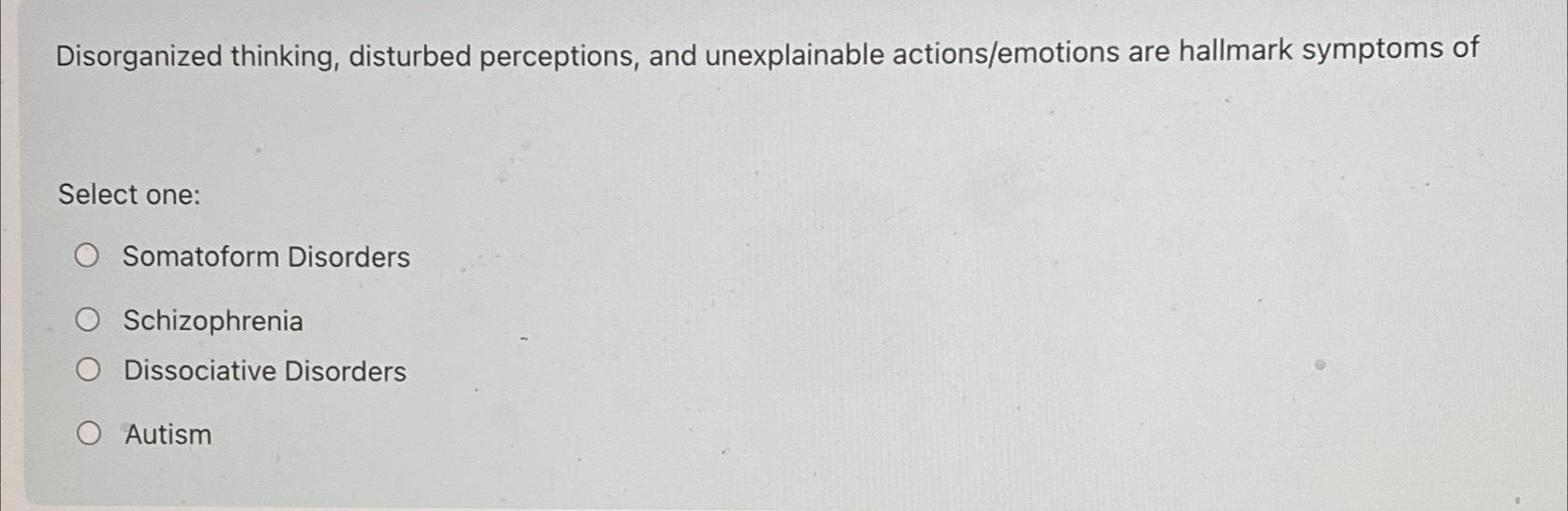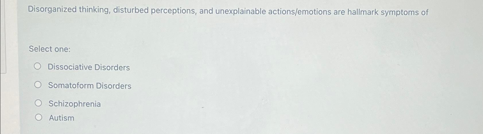 Solved Disorganized thinking, disturbed perceptions, and | Chegg.com