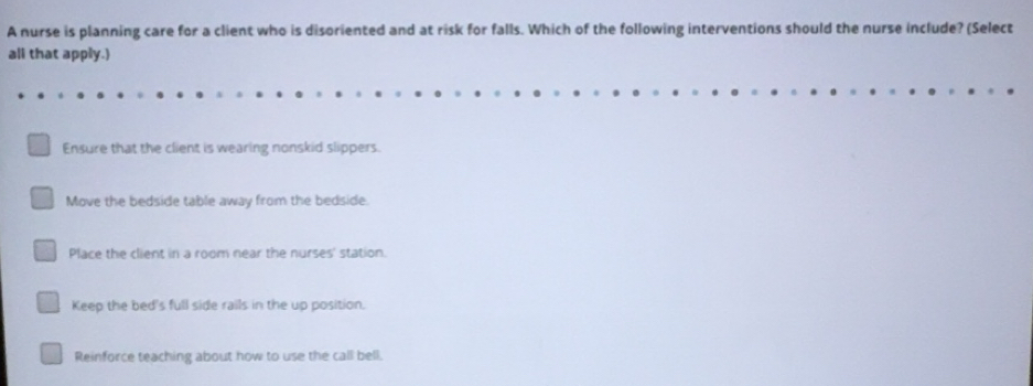 Solved: A nurse is planning care for a client who is disoriented and at ...