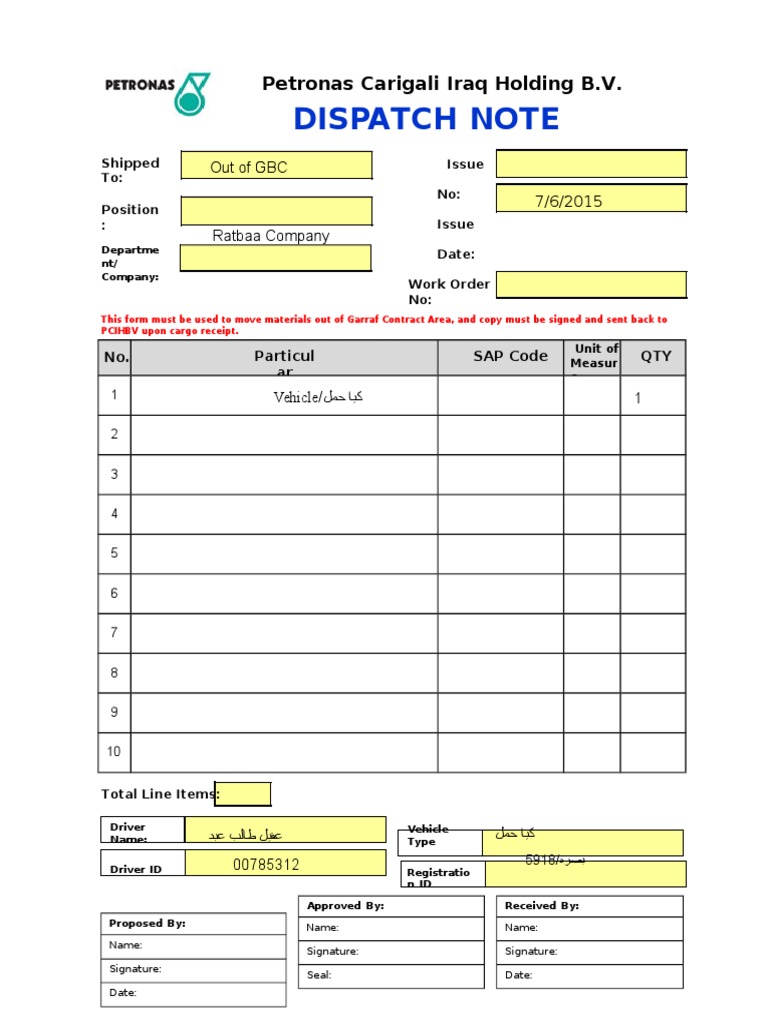 Dispatch Note Template