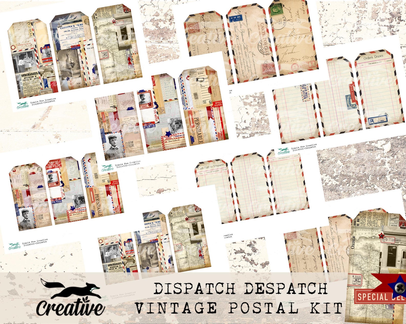 DISPATCH DESPATCH - Printable Scrapbook Papers, Postal Theme DIGI23 22 ...