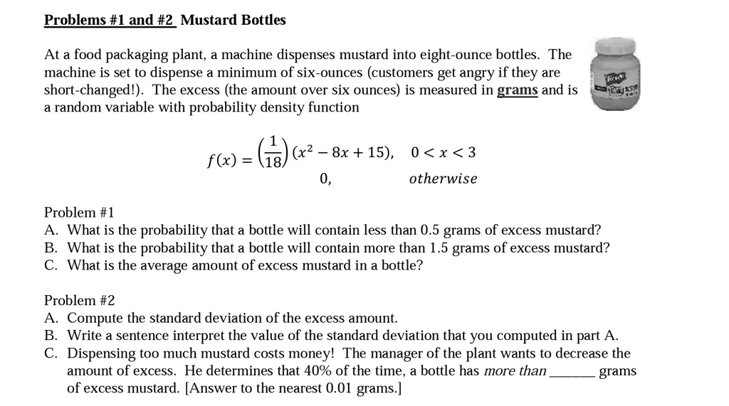 SOLVED: Problems #1 and #2 Mustard Bottles At a food packaging plant, a ...