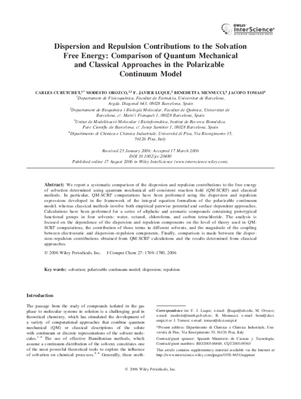 (PDF) Dispersion and repulsion contributions to the solvation energy ...