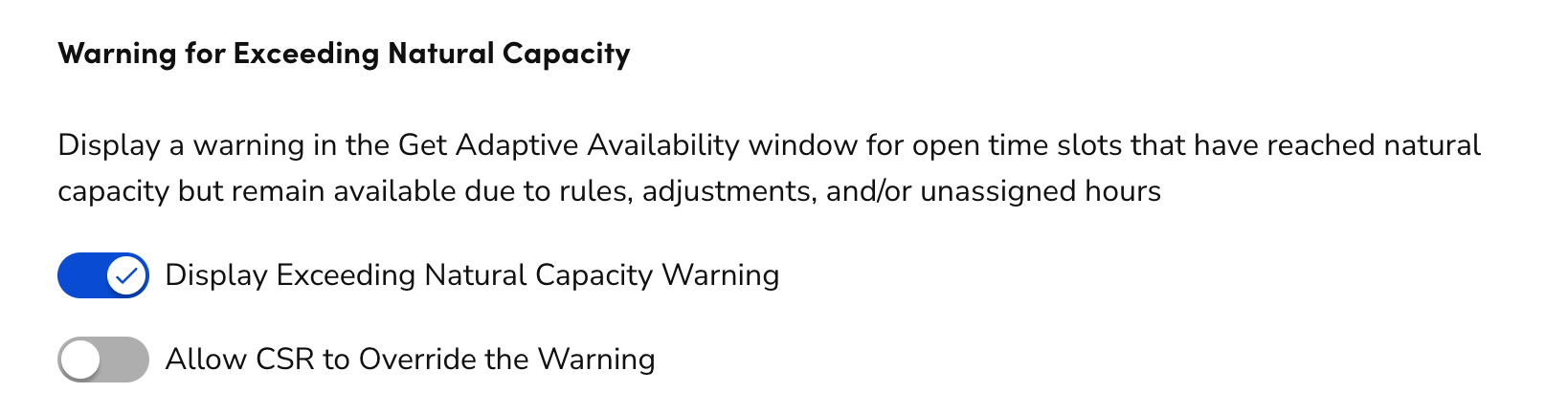 Adaptive Capacity Advanced Settings Warning for Exceeding Natural ...