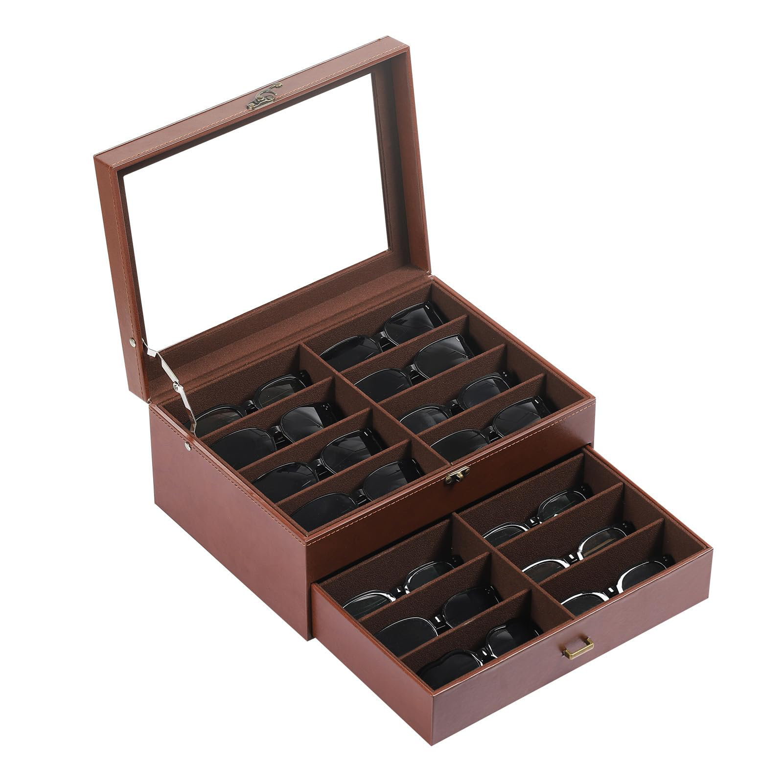 Latitude Run® Leather & Velvet Clear Lid 16 Piece Eyeglasses Storage ...