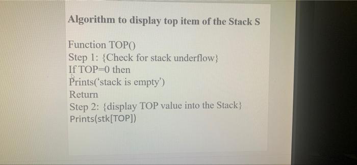 Solved Algorithm to display the items of a Stack S Function | Chegg.com