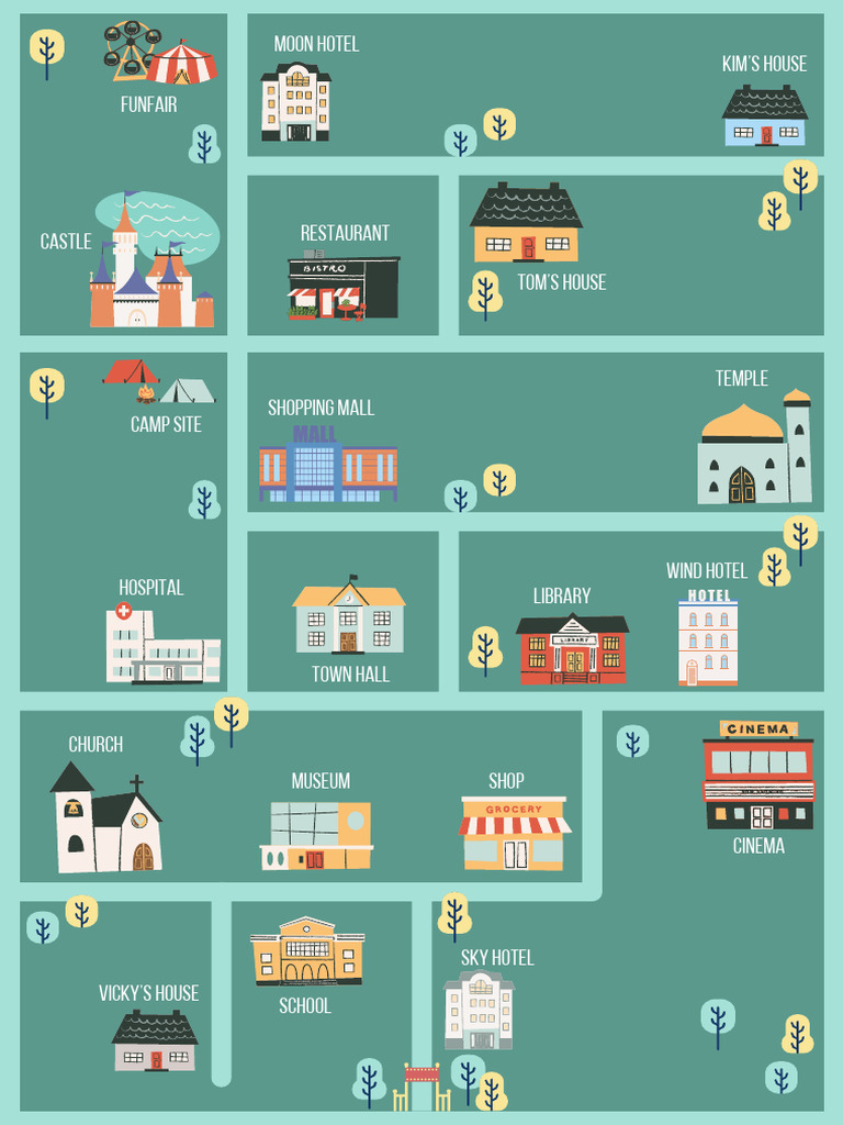 Maps and Directions with Locations Flashcards [Kids, A1-A2]