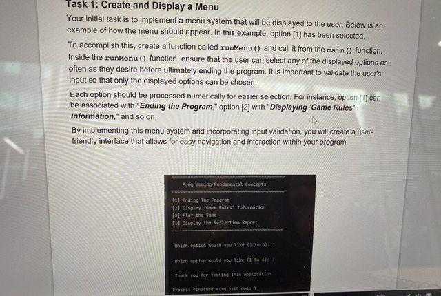 Solved Task 1: Create and Display a Menu Your initial task | Chegg.com