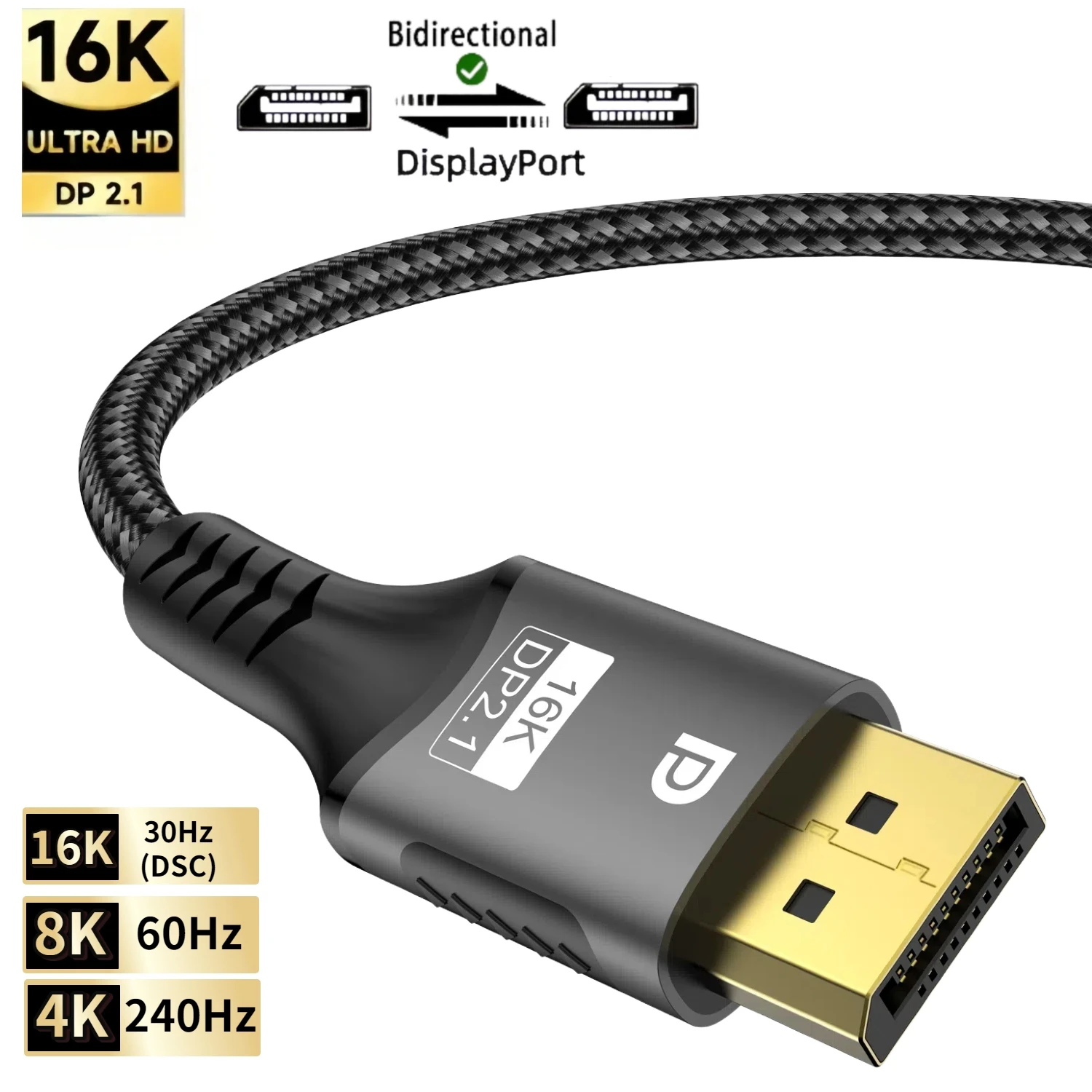 16K DisplayPort 2.1 Cable DP 2.0 16K@60Hz,8K@120Hz,4K@240Hz 165Hz144Hz ...