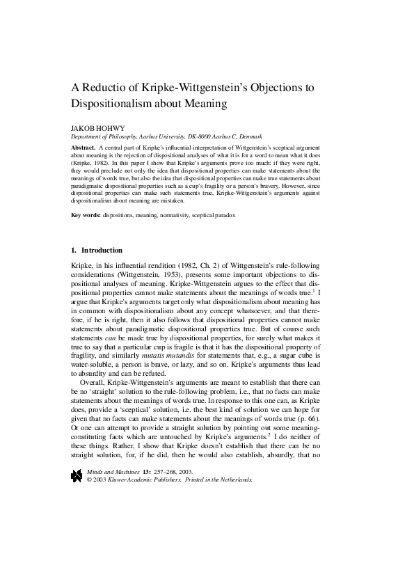 (PDF) Kripke’s Wittgenstein and Ginsborg’s Reductive Dispositionalism ...