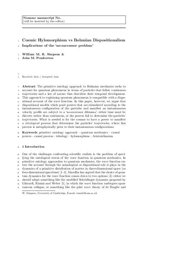 (PDF) Cosmic Hylomorphism vs Bohmian Dispositionalism - Implications of ...