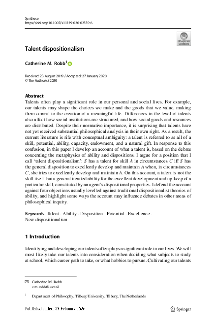 (PDF) Talent dispositionalism | Catherine M Robb - Academia.edu