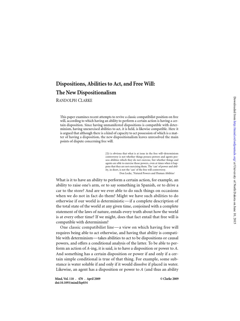 Dispositions, Abilities To Act, and Free Will: The New Dispositionalism ...