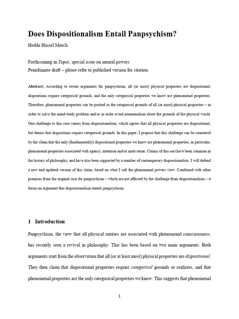 Does Dispositionalism Entail Panpsychism? | PDF | Causality | Mind