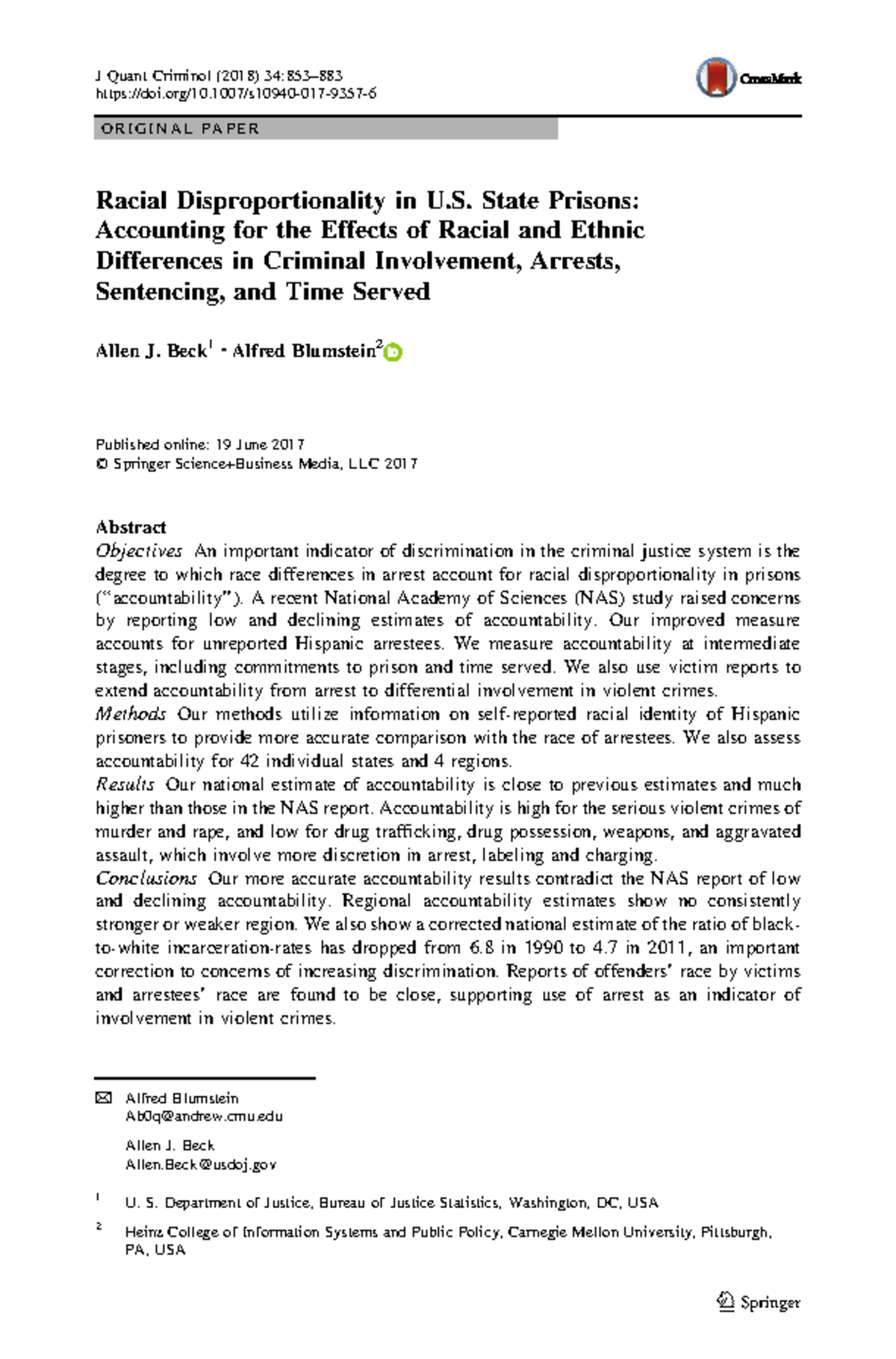 Racial Disproportionality in US Prisons: Analyzing Involvement and ...