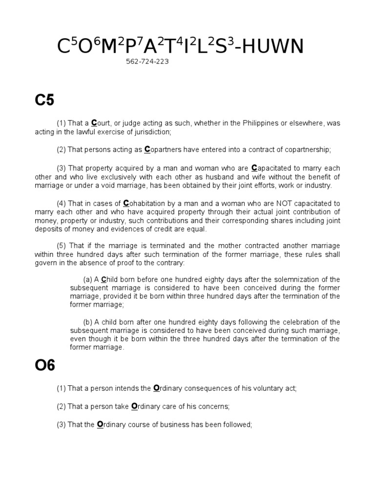 Disputable Presumptions Mnemonic | PDF | Marriage | Evidence (Law)