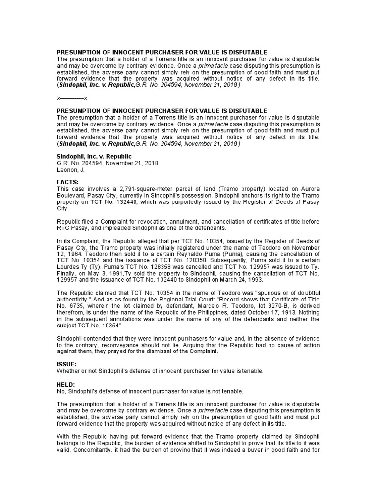 Presumption of Innocent Purchaser For Value Is Disputable | PDF ...