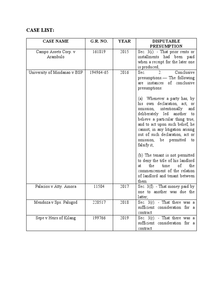 Disputable Presumptions in Legal Cases | PDF | Burden Of Proof (Law ...