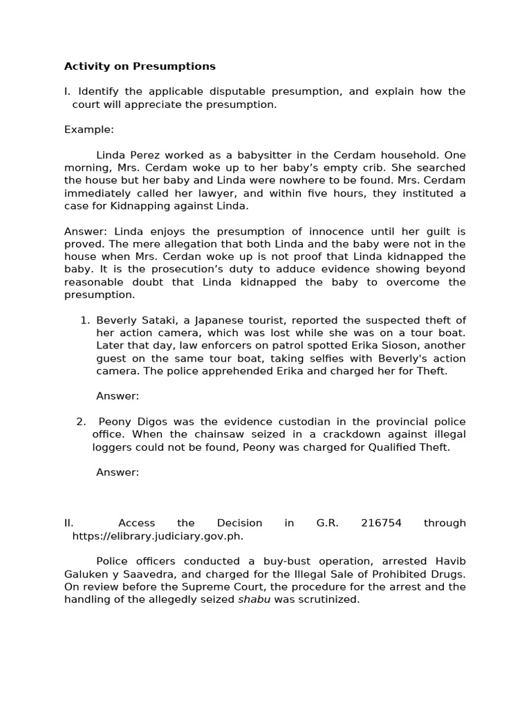 36. Examples of presumptions of facts 2020 - Examples of presumptions ...