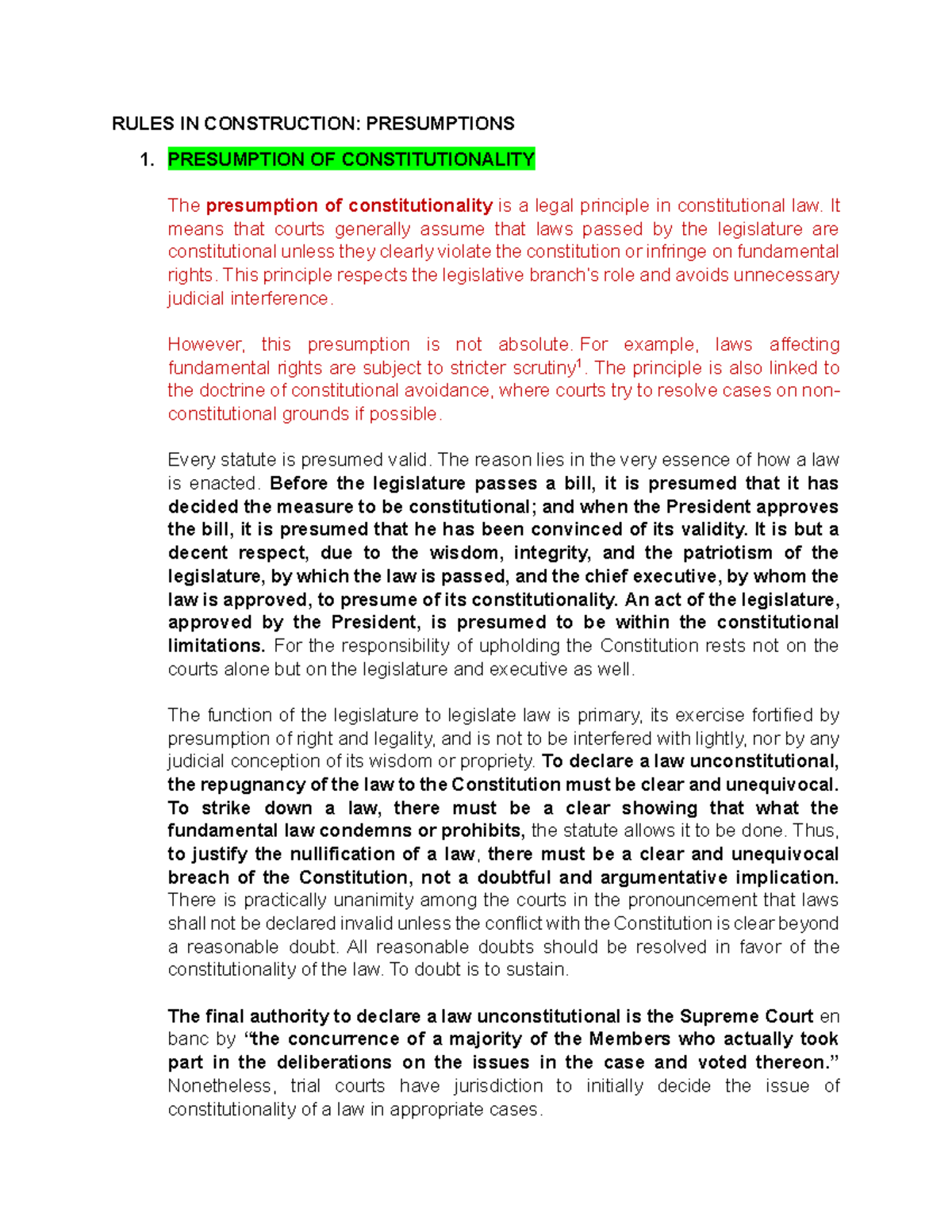 Rules IN Construction - III-A Presumption - RULES IN CONSTRUCTION ...