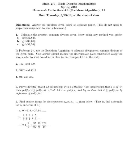 Solved Math 270 Basic Discrete Mathematics Spring 2018 | Chegg.com