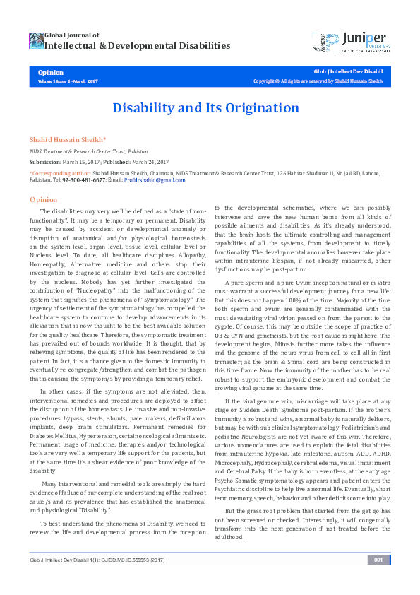 (PDF) Glob J Intellect Dev Disabil Disability and Its Origination