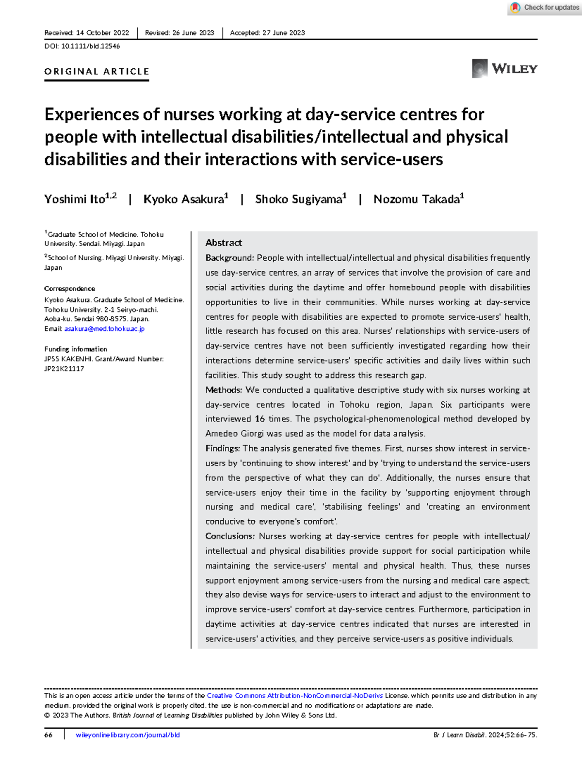 Brit J Learn Disabil - 2023 - Ito - Experiences of nurses working at ...