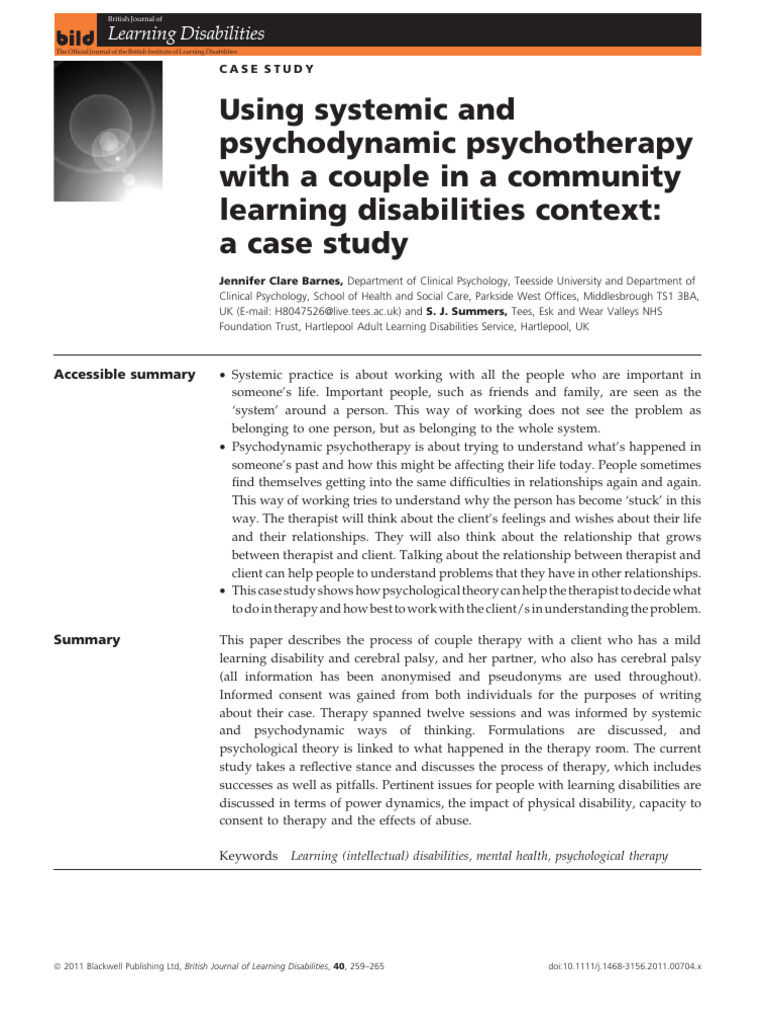 Brit J Learn Disabil - 2011 - Barnes - Using Systemic and Psychodynamic ...