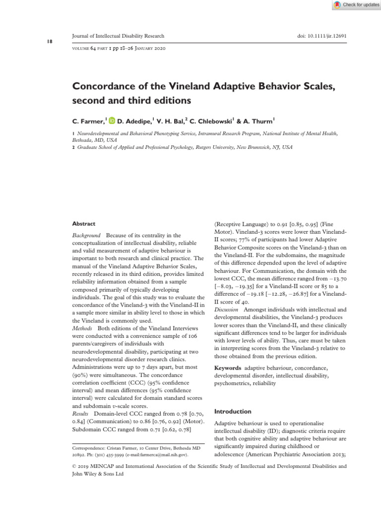 Vineland-3 vs. Vineland-II Concordance Study | PDF | Intellectual ...