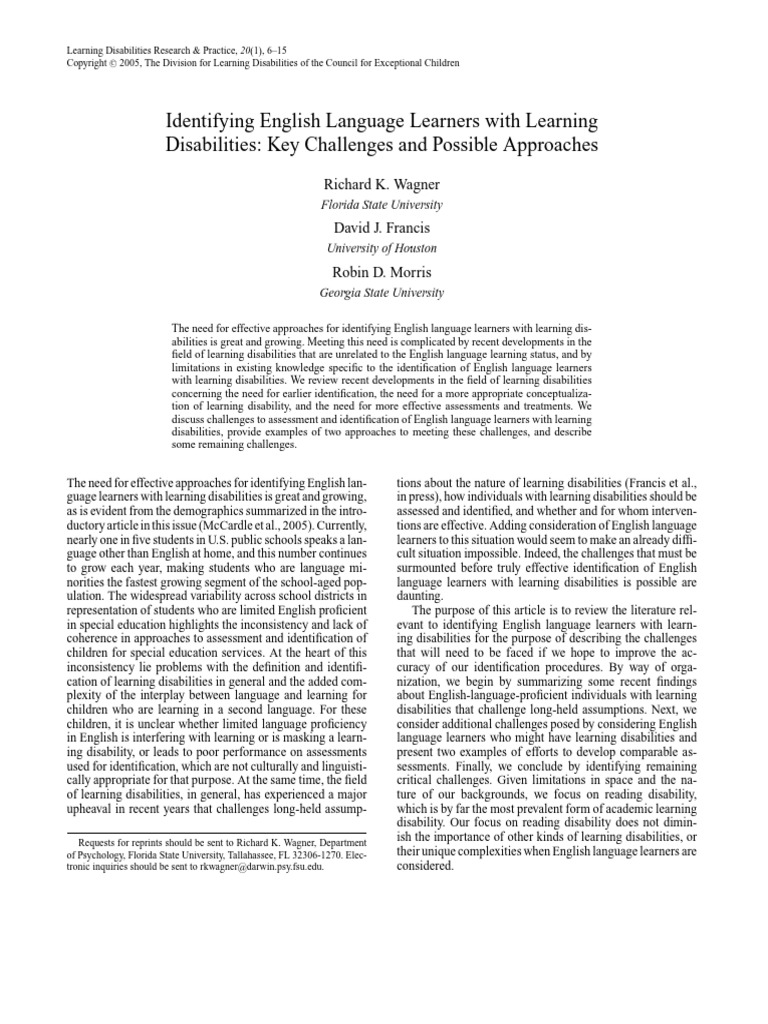 Learn Disabil Res Pract - 2005 - Wagner - Identifying English Language ...