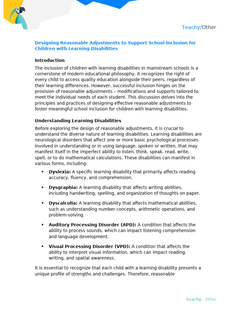 Designing Effective Reasonable Adjustments For Inclusive Education of ...
