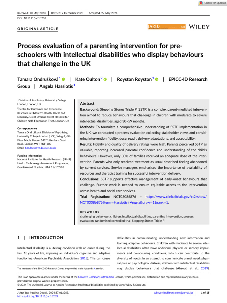 Research Intellect Disabil - 2024 - Ondrušková - Process Evaluation of ...